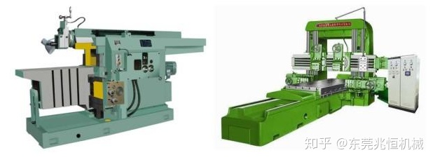 相对车床和铣床而言,刨床的种类要少很多,同样根据机械加工工艺师手册的统计大概有21种左右,比较典型的类型有:悬臂刨床、龙门刨床、牛头刨床、边缘及模具刨床等,这些大类中又分为很多个小类型的刨床产品,而我们在机械行业使用率最高,普及率最广的应该属牛头刨床和龙门刨床,如上图所示,我们下面也就针对这两种典型的刨床来做一个基本的分析和介绍。