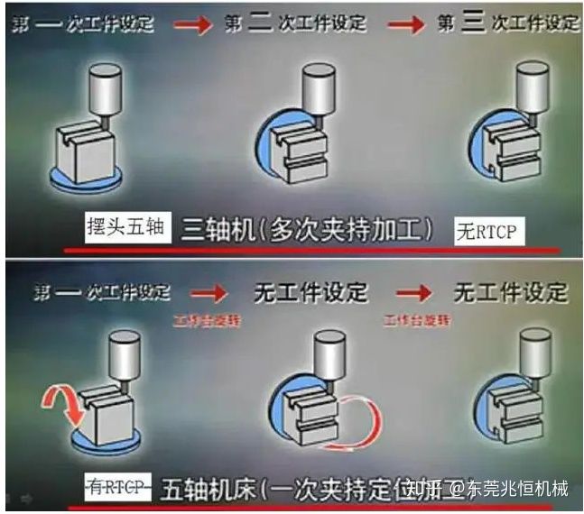 不具备RTCP的五轴机床和数控系统必须依靠CAM编程和后处理,事先规划好刀路,同样一个零件,机床换了,或者刀具换了,就必须重新进行CAM编程和后处理,因而只能被称作假五轴,国内很多五轴数控机床和系统都属于这类假五轴。当然了,人家硬撑着把自己称作是五轴联动也无可厚非,但此(假)五轴并非彼(真)五轴!